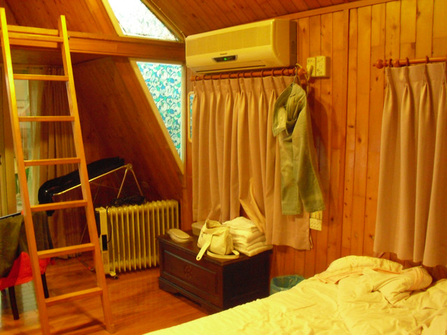 先說先說~為什麼說是八人房呢?因為是房間裡有兩張雙人床,前後有小閣樓,每邊可睡兩人~超酷的!